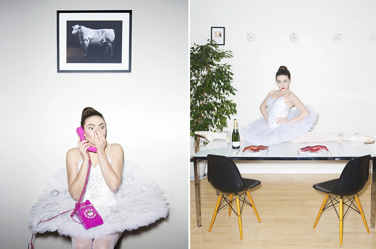I thought it might be fun to play on the refined and delicate nature of ballet, switching between quieter poised pics to loud and brash images, changing the light set-ups accordingly.