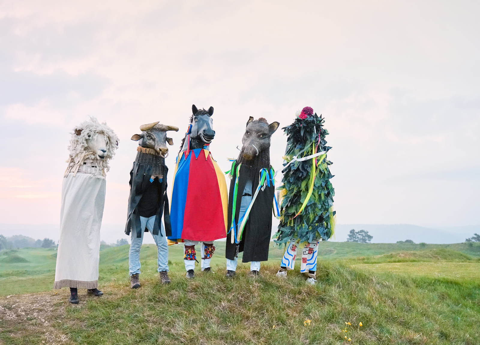 A sunrise meeting with the all female Morris dancing troupe Boss Morris during the Beltane May Day celebrations. Photographed for the Telegraph
