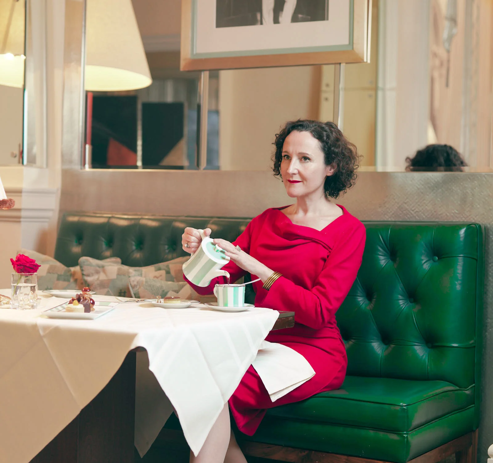 Henrietta Lovell founder of The Rare Tea Company taking afternoon tea in Claridges. Photographed for Discover Britain Magazine